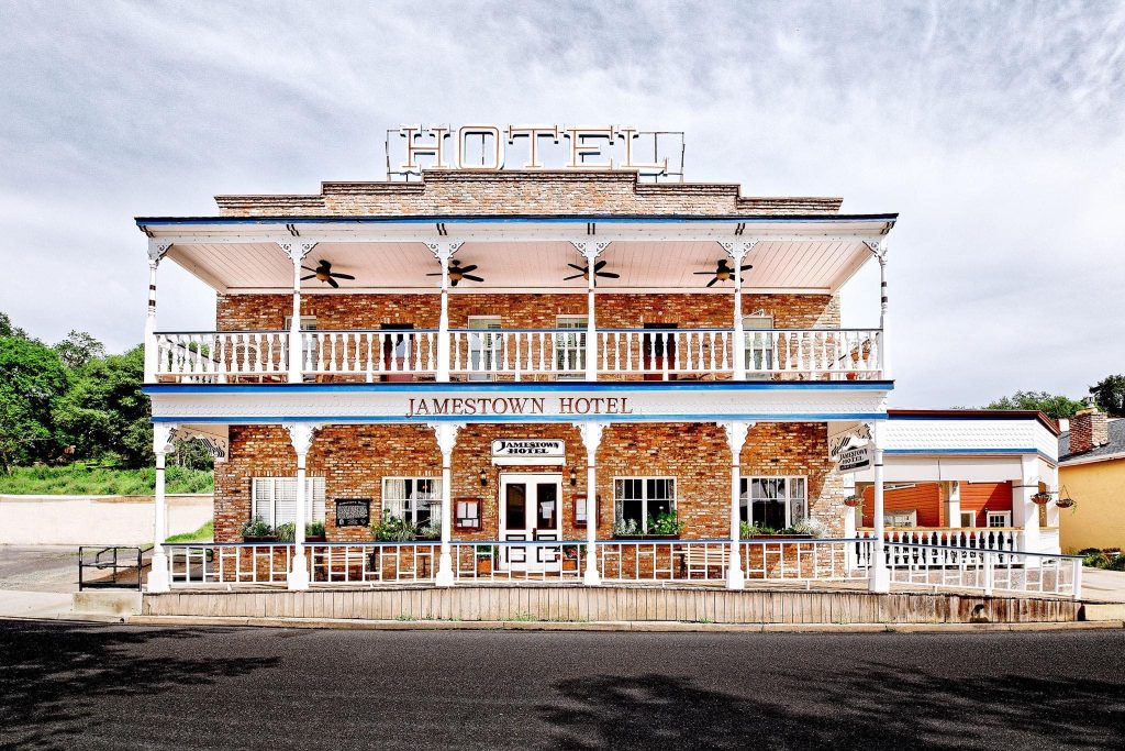 This hotel, originally built in 1859 but lost to fire and rebuilt several times, is the current Jamestown Hotel dates to 1919, standing as a prominent landmark on Main Street in this historic Gold Rush town.